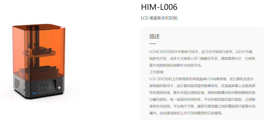 本網(wǎng)頁(yè)所展示的有關(guān)【桌面級(jí)3D打印機(jī)HIM-L006 LCD】的信息/圖片/參數(shù)等由的會(huì)員【杭州喜馬拉雅-深圳柏萊科技有限公司 】提供,由柏萊儀器網(wǎng)-專業(yè)銷售儀器儀表服務(wù)商-深圳柏萊科技有限公司會(huì)員【杭州喜馬拉雅-深圳柏萊科技有限公司 】自行對(duì)信息/圖片/參數(shù)等的真實(shí)性、準(zhǔn)確性和合法性負(fù)責(zé),本平臺(tái)(本網(wǎng)站)僅提供展示服務(wù),請(qǐng)謹(jǐn)慎交易,因交易而產(chǎn)生的法律關(guān)系及法律糾紛由您自行協(xié)商解決,本平臺(tái)(本網(wǎng)站)對(duì)此不承擔(dān)任何責(zé)任。您在本網(wǎng)頁(yè)可以瀏覽【桌面級(jí)3D打印機(jī)HIM-L006 LCD】有關(guān)的信息/圖片/價(jià)格等及提供 【桌面級(jí)3D打印機(jī)HIM-L006 LCD】的商家公司簡(jiǎn)介、聯(lián)系方式等信息。