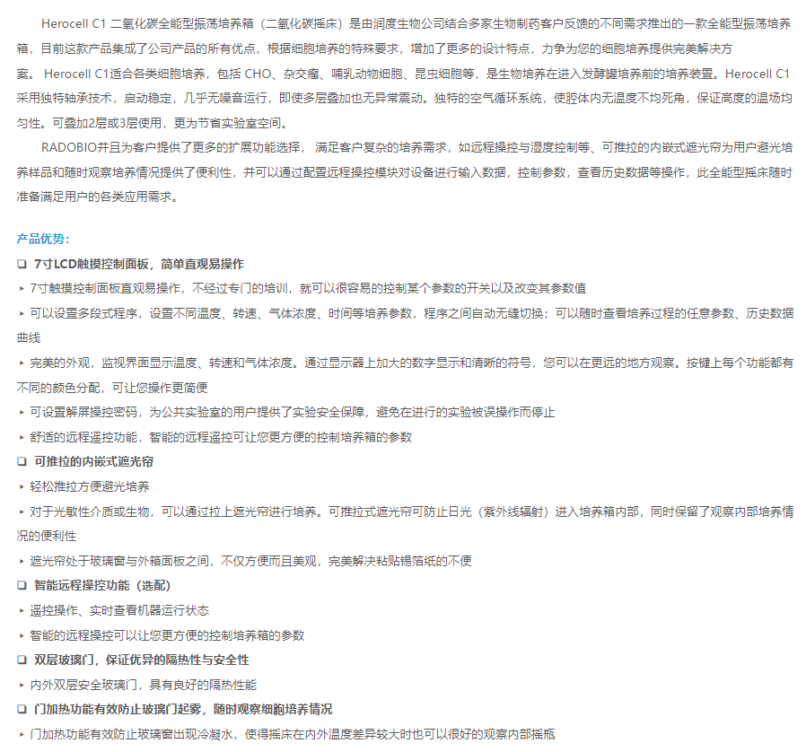 本網(wǎng)頁所展示的有關【Herocell C1 全能型二氧化碳振蕩培養(yǎng)箱】的信息/圖片/參數(shù)等由的會員【潤都生物-深圳柏萊科技有限公司 】提供,由柏萊儀器網(wǎng)-專業(yè)銷售儀器儀表服務商-深圳柏萊科技有限公司會員【潤都生物-深圳柏萊科技有限公司 】自行對信息/圖片/參數(shù)等的真實性、準確性和合法性負責,本平臺(本網(wǎng)站)僅提供展示服務,請謹慎交易,因交易而產(chǎn)生的法律關系及法律糾紛由您自行協(xié)商解決,本平臺(本網(wǎng)站)對此不承擔任何責任。您在本網(wǎng)頁可以瀏覽【Herocell C1 全能型二氧化碳振蕩培養(yǎng)箱】有關的信息/圖片/價格等及提供 【Herocell C1 全能型二氧化碳振蕩培養(yǎng)箱】的商家公司簡介、聯(lián)系方式等信息。