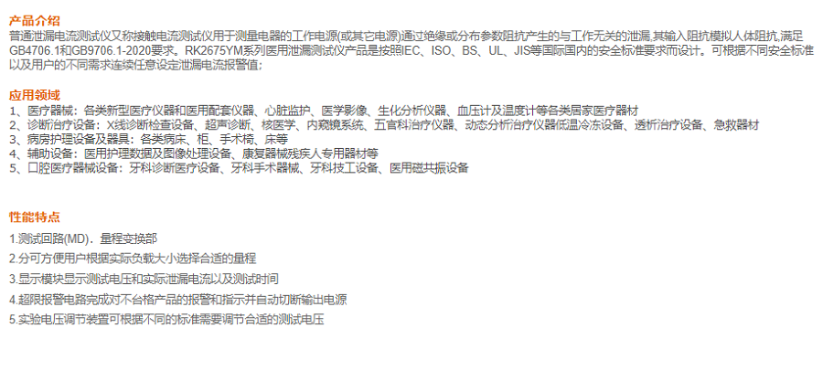 本網(wǎng)頁所展示的有關【RK2675YM醫(yī)用泄漏電流測試儀】的信息/圖片/參數(shù)等由的會員【美瑞克-深圳柏萊科技有限公司 】提供,由柏萊儀器網(wǎng)-專業(yè)銷售儀器儀表服務商-深圳柏萊科技有限公司會員【美瑞克-深圳柏萊科技有限公司 】自行對信息/圖片/參數(shù)等的真實性、準確性和合法性負責,本平臺(本網(wǎng)站)僅提供展示服務,請謹慎交易,因交易而產(chǎn)生的法律關系及法律糾紛由您自行協(xié)商解決,本平臺(本網(wǎng)站)對此不承擔任何責任。您在本網(wǎng)頁可以瀏覽【RK2675YM醫(yī)用泄漏電流測試儀】有關的信息/圖片/價格等及提供 【RK2675YM醫(yī)用泄漏電流測試儀】的商家公司簡介、聯(lián)系方式等信息。